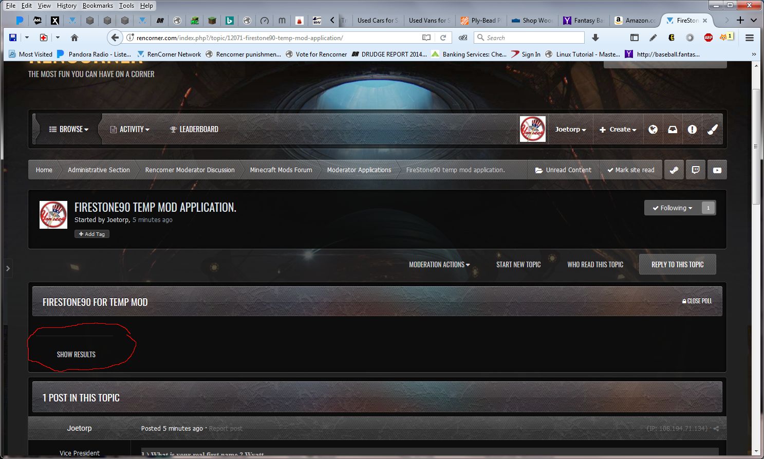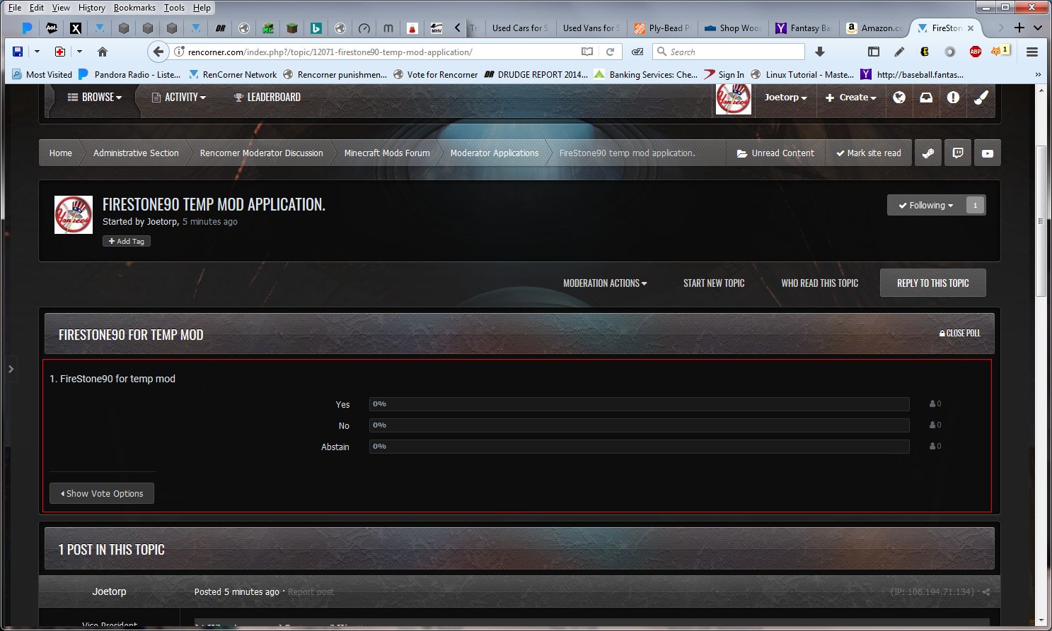 Joetorp Posted February 17, 2018 Posted February 17, 2018 You can create a poll when you make a topic, however when the topic is posted the poll is not visible. All that shows is "Show results" When I click on that it shows the poll results, but you can't make an entry. There is a link to view the poll options but clicking on it gets you back to nothing to vote on. 1