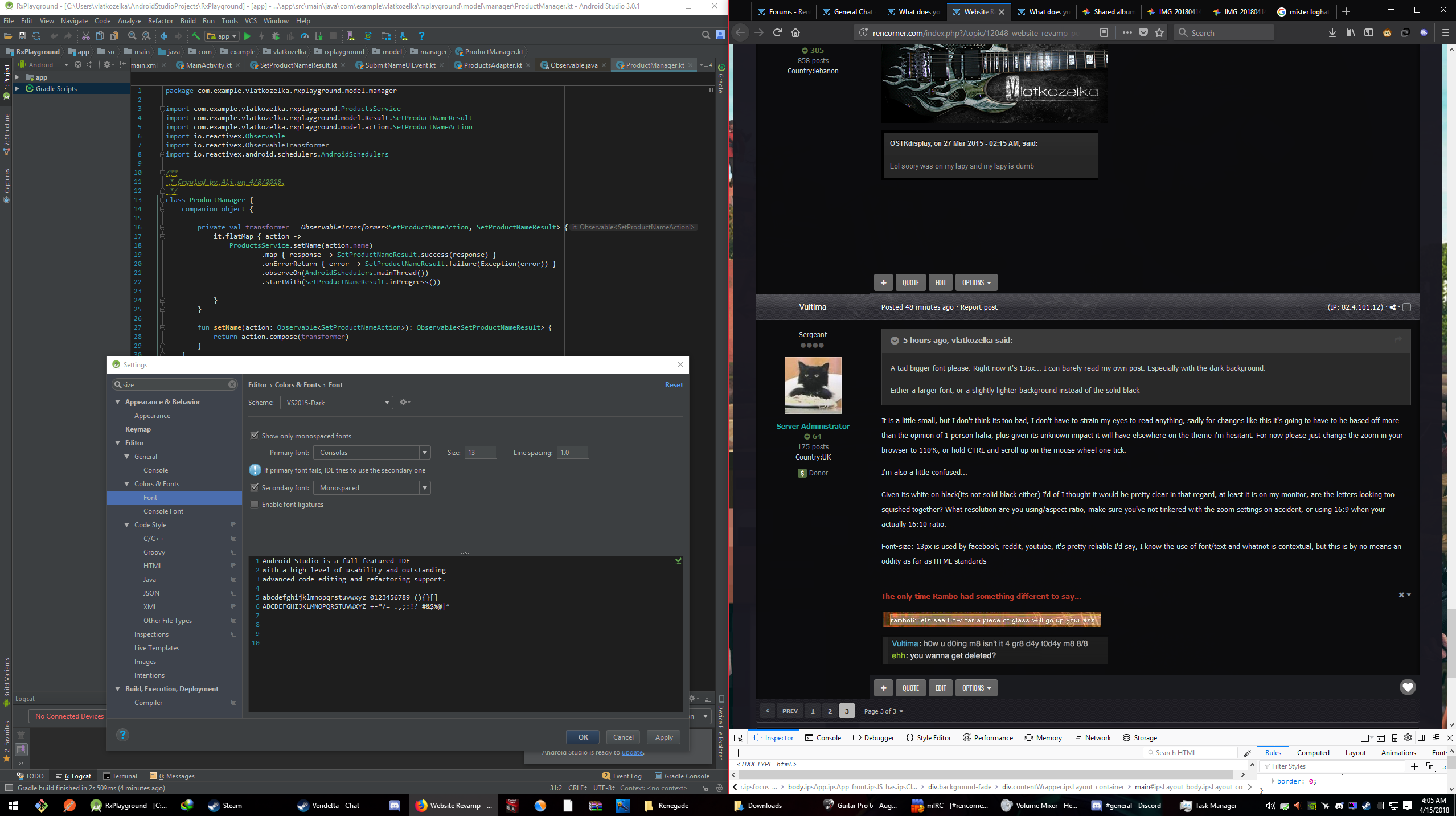 vlatkozelka Posted April 15, 2018 Posted April 15, 2018 Both are 13px, but left one is a lot easier to read. I'm on a 27'' 1440p screen, I really doubt it's the problem the 13px font-size isn't bad. The almost solid black background makes it hard to read for me. #0a0a0a is almost identical to #000000 for the not too girly person :p If you look at your signature, where you're quoting ehh, that's a background color I'd use for "black" At any rate, I can apply a custom css just for rencorner, just for myself :P thanks for the reply