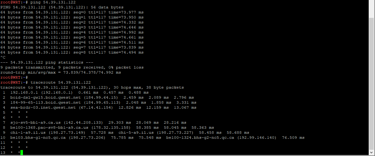 Itai795 Posted March 26, 2020 Posted March 26, 2020 Tracing route to ovh.rencorner.co [54.39.131.122] over a maximum of 30 hops: 1 4 ms 3 ms 1 ms 192.168.0.1 2 16 ms 48 ms 46 ms cpe-74-66-192-1.si.res.rr.com [74.66.192.1] 3 35 ms 35 ms 33 ms be55.nymtnyjo01h.nyc.rr.com [68.173.202.220] 4 119 ms 37 ms 49 ms agg118.nyclnyrg01r.nyc.rr.com [68.173.198.56] 5 44 ms 40 ms 63 ms bu-ether29.nwrknjmd67w-bcr00.tbone.rr.com [107.14.19.24] 6 51 ms 12 ms 142 ms 107.14.17.239 7 51 ms 37 ms 32 ms 66.109.5.117 8 78 ms 26 ms 33 ms ash-1-n7.va.us [142.44.208.194] 9 89 ms 73 ms 52 ms be100-1039.nwk-1-a9.nj.us [198.27.73.202] 10 58 ms 92 ms 80 ms be102.bhs-g1-nc5.qc.ca [198.27.73.204] 11 * * * Request timed out. 12 * * * Request timed out. 13 * * * Request timed out. 14 76 ms 91 ms 63 ms ns573568.ip-54-39-131.net [54.39.131.122] Trace complete.