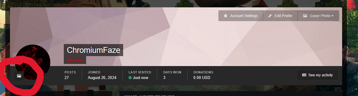 ChromiumFaze Posted August 19 Posted August 19 (edited) go to your own profile page then click the button at the bottom left of your profile picture Edited August 19 by ChromiumFaze